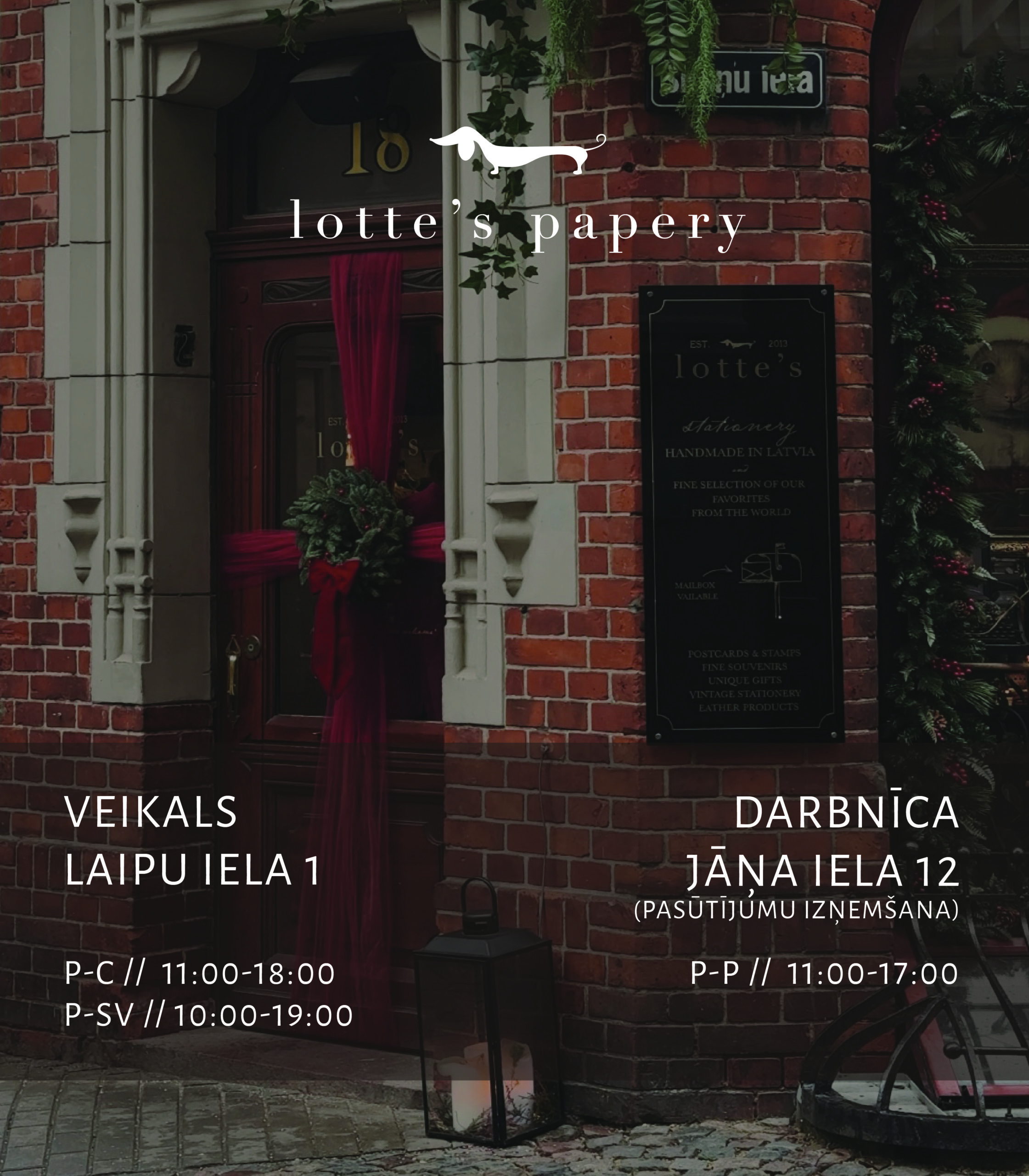 Katrā gravētajā zīmogā, ko izmanto savu sapņu ielūgumu radīšanai, katrā ādas foto albumā, ko piepildi ar skaistākajām atmiņām, katrā piezīmju grāmatā, kurā apkopo sapņus un mērķus, katrā kartītē, kuru radām tepat, kādā darbnīcas gaišajā stūrītī, lai tālāk to vari dāvāt mīļajiem.