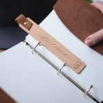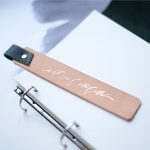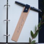 ! All bookmarks are made of light brown leather with various eyelets and embossing options.