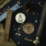 Each stamp is packaged in a specially designed black cardboard box with the "lotte's papery" logo embossed on the lid in matte silver.