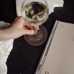 Leather cup/cup coaster with embossed gold text "because adulting is hard".