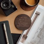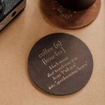 Leather cup/cup coasters with embossed gold text: