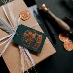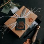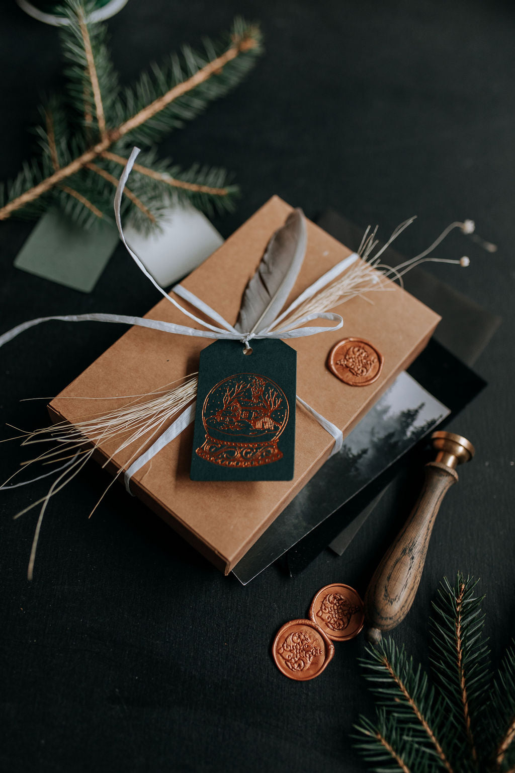 A gift tag in dark green color with a bronze design made in relief print, which will complement the design of the gift you have prepared with the possibility of adding a personal wish to the gift recipient.