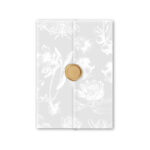 A decorative wrap / jacket for invitations (10×15 cm), printed in white on 120gsm vellum paper (transparent paper). A stylish accent to hold invitations and detail cards together.
