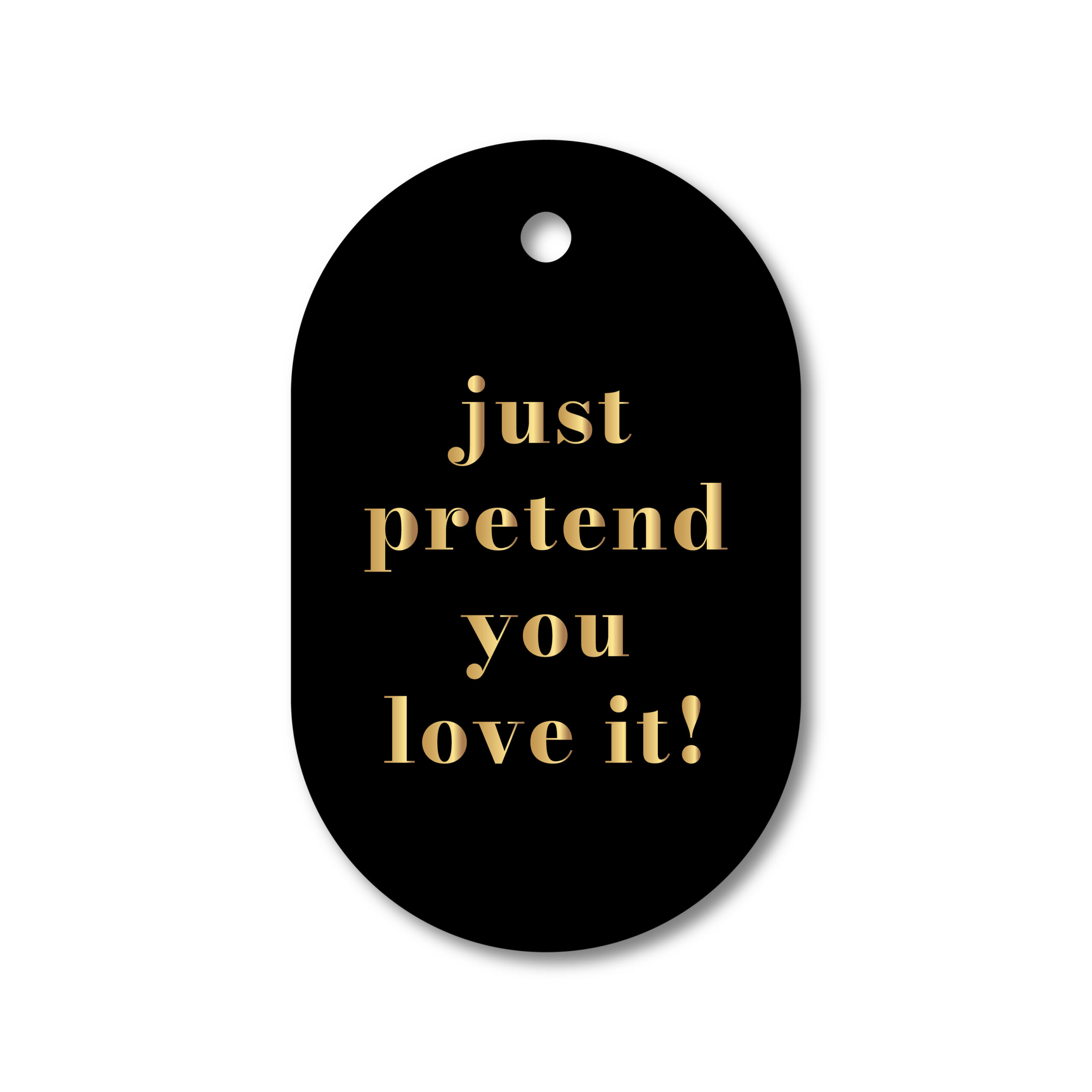 Black gift tag with gold embossed design that will complement the presentation of your prepared gift, with the option to add a personal message for the recipient.