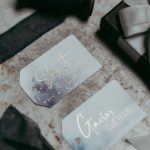 A gift tag with a light background in watercolor technique and a golden inscription "Beautiful holidays" made in relief printing, which will complement the design of the gift you have prepared with the possibility of adding a personal wish to the recipient of the gift.