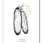 Single-sided greeting card with illustration and text "you're my cutecumber" and gold elements embossed. The other side of the card is blank so you can write your wish.