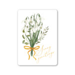 Single-sided greeting card with a bouquet of Snowdrops and text "Sunny Greetings". The other side of the card is blank so you can write your greeting.