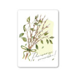 Single-sided greeting card with botanical illustration and text "Pavasarīgi sveicieni!" which means "Spring Greetings" in Latvian. The other side of the card is blank so you can write your greeting.