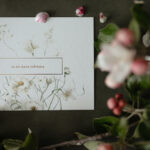 Single-sided greeting card with vintage flower illustration and text "tu esi mana iedvesma" which means "you are my inspiration" in Latvian, with text embossed in gold. The other side of the card is blank so you can write your greeting.