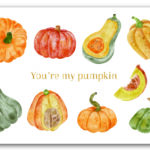 One-sided greeting card with an illustration and the text "You're my pumpkin" printed in gold embossing. The other side of the card is blank so you can write your wish.