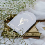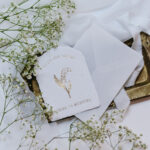 A handmade paper gift tag with gold swirls, a houseplant motif, and the text "You are the beginning of everything, hope and love" printed in foil printing technique, which will complement the design of your prepared gift with the opportunity to add a personal wish to the recipient.