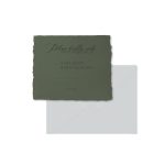 A handcrafted RSVP card in deep forest green, made from deckle-edged handmade paper, paired with a semi-transparent envelope. Features a calligraphic, minimalist-style text.