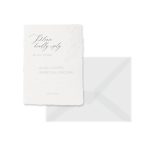 You can complete the set with matching pieces such as the main invitation card, detail card, envelope, menu, place cards, and more. Browse the full collection here.