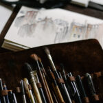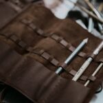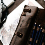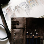 Brush case made of quality rustic leather. The leather straps of the wallet come in two different heights, so it will fit both large brushes and small pencils. The leather straps of the wallet will hold art tools of various thicknesses and shapes very well. There is a pocket at the bottom of the wallet that will ensure that the contents of the wallet stay securely in place. The wallet is designed to be functional, it unfolds completely and is easy to see and use, but when you're done, roll it up and it's compactly packed together. The wallet has two pockets for small items - one for very small trinkets, the other for pencils and other slightly larger tools.