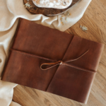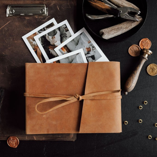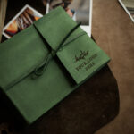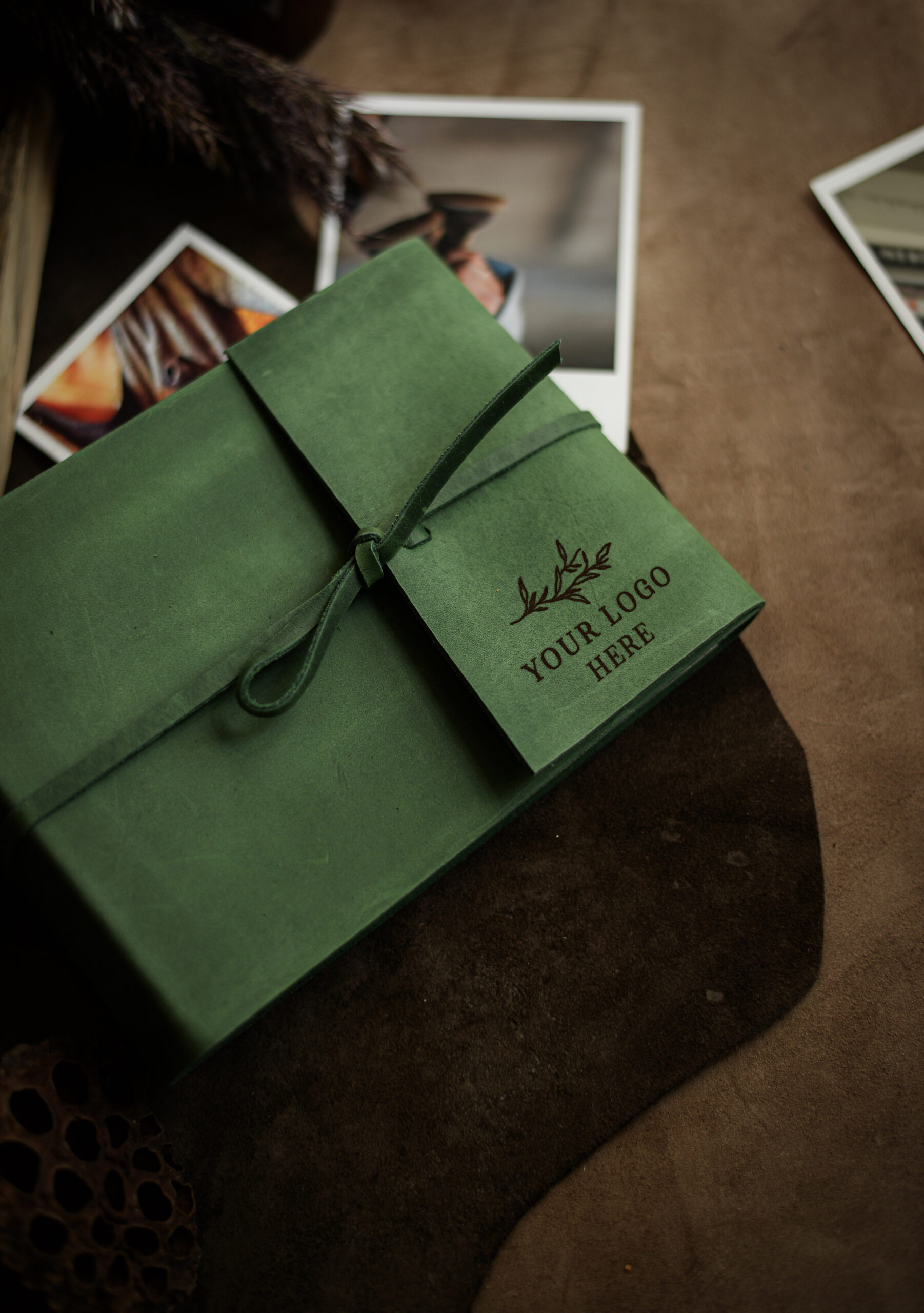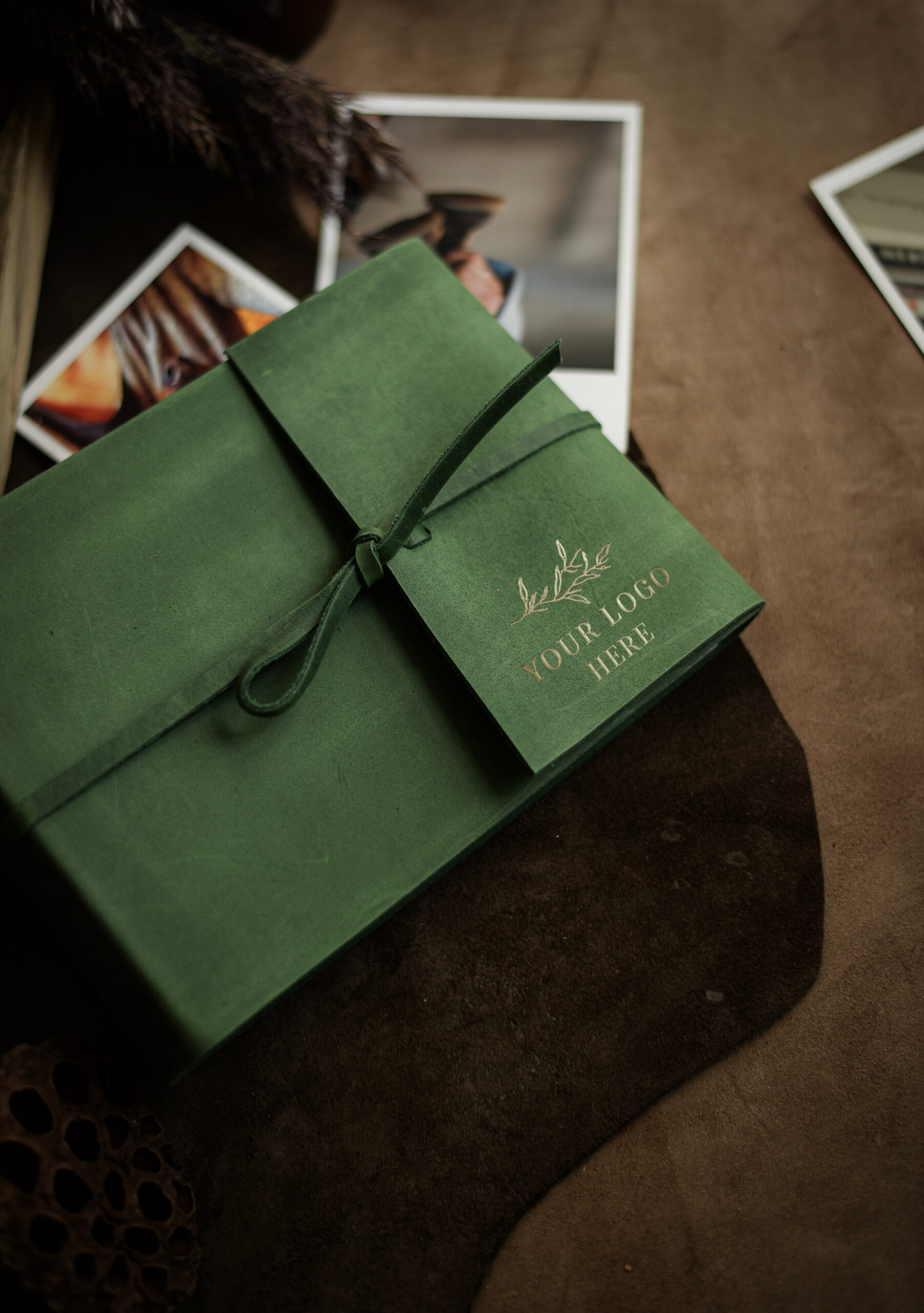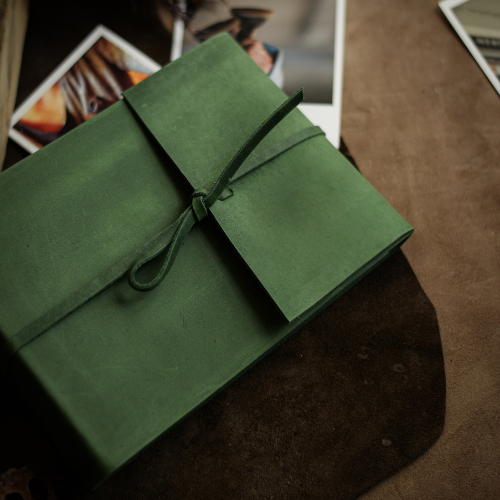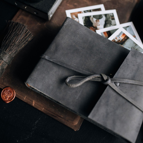 Designed in an elegant minimalist style, hand-bound in leather covers, laser-engraved with your chosen couple's names, thick, high-quality paper, and airy interleaves - the perfect album to store precious memories. Closure with a leather strap of the same color.