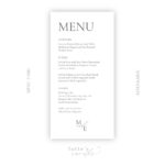 Menu can be complemented with place cards etc. in a matching style.