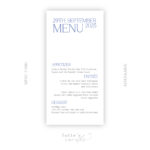 Menu can be complemented with place cards etc. in a matching style.