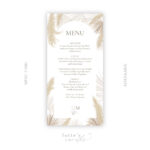 Elegant wedding menu with pampa grass pattern, in cream and nude colors.