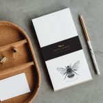A notebook with tear-off pages and various printed insect-themed illustrations inside. Special illustrations by our own artist Ilona Kaķīte, made at Lotte's papery.