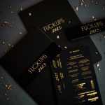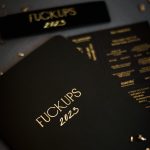 Notebook in black color with gold printed design "F*&UPS 2023".