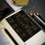 The notebook comes with matte black stickers (27 pcs) with witty inscriptions in metallic gold color, which you can add to your notes or elsewhere.