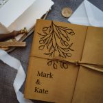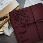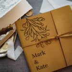 Guestbook in rough, thick leather covers, complete with a personalized patched design. Accurate and careful handwork with an elegant feel that will add character and design to your wedding or special event.