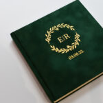 Guest book in elegant velvet paper covers, which we will personalize with a luxurious crown, the couple's initials and the important date, as shown in the sample, in gold or silver. Accurate and meticulous handmade work with an elegant and royal feel - will perfectly complement your wedding or special event. Also matches marriage covers or vow books.