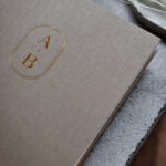 The book is meticulously handmade, neatly bound in sturdy covers covered with a linen-like textured material, which makes it particularly pleasant to the touch. Personalize with your chosen initials in silver or gold.