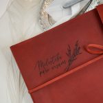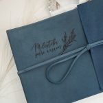 An elegant, hand-bound photo album in leather covers, laser-engraved with the inscription "Love above everything" and a branch motif, thick, high-quality paper and airy interleaves - the right album to store precious memories. Closure with a leather strap of the same color.