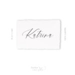 Minimalist style wedding place card in white and black colors. Hand-torn paper. An elegant design - guest name printed in calligraphic style.