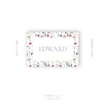 Elegant and romantic place card made of sturdy paper, featuring a design with the guest's name and a decorative frame with watercolour flowers. The back of the card is blank - free space to write a personal message/thank you to the guest.