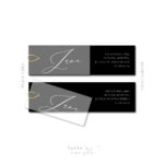 Minimalist style wedding seating chart in black and white. Elegant design. The name is printed on transparent paper and pinned with a gold paper clip.