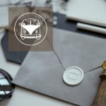 Ready-made wax stamp stickers with a retro bus symbol in the color of your choice.