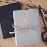Hand-bound book in quality leather covers. Make the book extra personal by adding a brass plaque with a personalized message, short quote or initials.