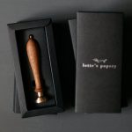 Each stamp is packaged in a specially designed black cardboard box with the "lotte's papery" logo embossed on the lid in matte silver.