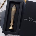 Each stamp is packaged in a specially designed black cardboard box with the "lotte's papery" logo embossed on the lid in matte silver.
