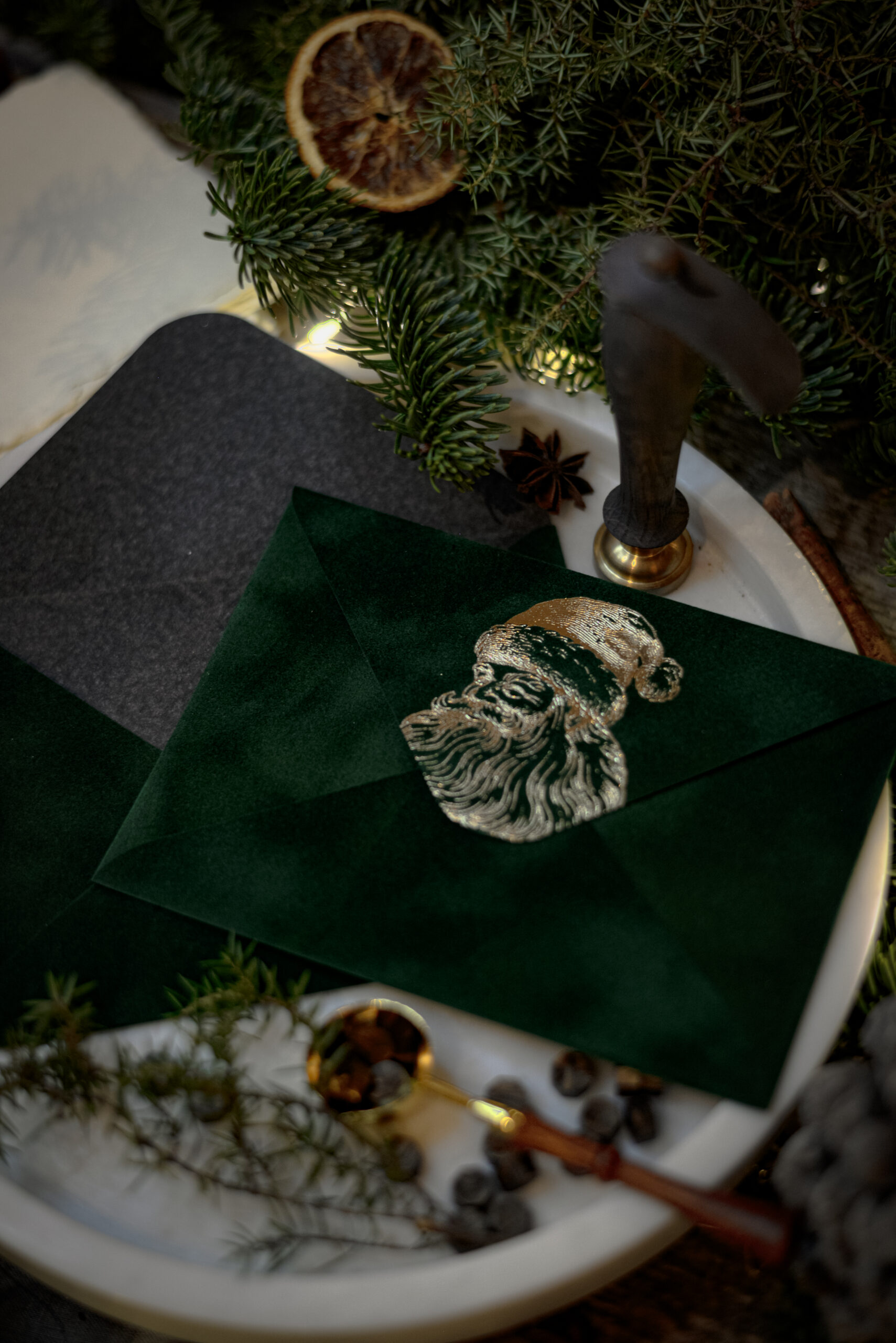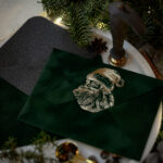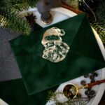 A velvet paper envelope in ģreen color with a Christmas motif printed in a foil printer will dress your chosen greeting card, note or letter so that you can safely and beautifully deliver it to the recipient.
