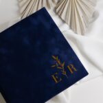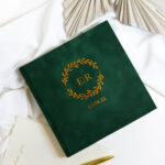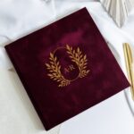 Guest book in elegant velvet paper covers, which we will personalize with a luxurious crown, the couple's initials and the important date, as shown in the sample, in gold or silver. Accurate and meticulous handmade work with an elegant and royal feel - will perfectly complement your wedding or special event. Also matches marriage covers or vow books.