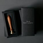 Each stamp is packaged in a specially designed black cardboard box with the "lotte's papery" logo embossed on the lid in matte silver.