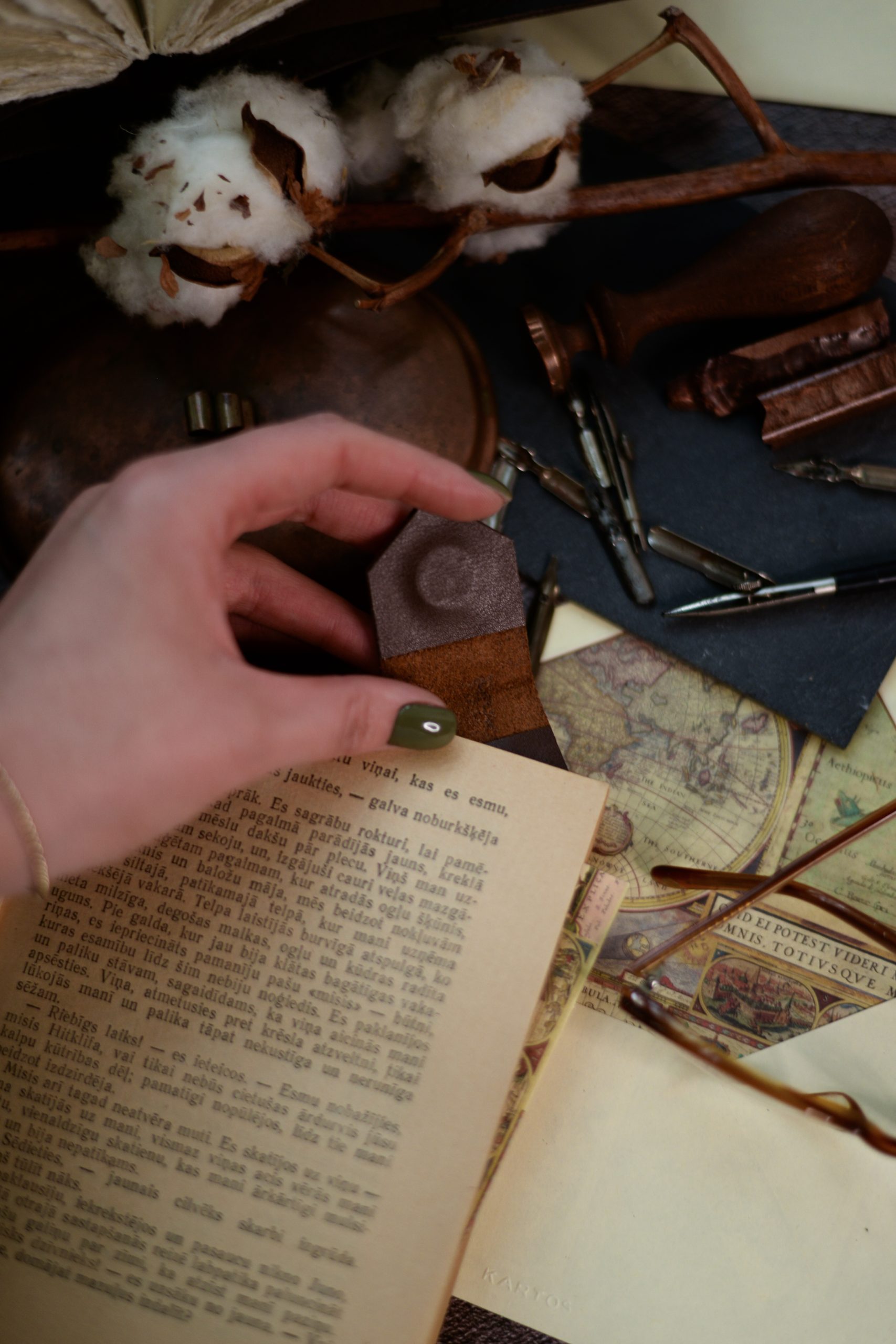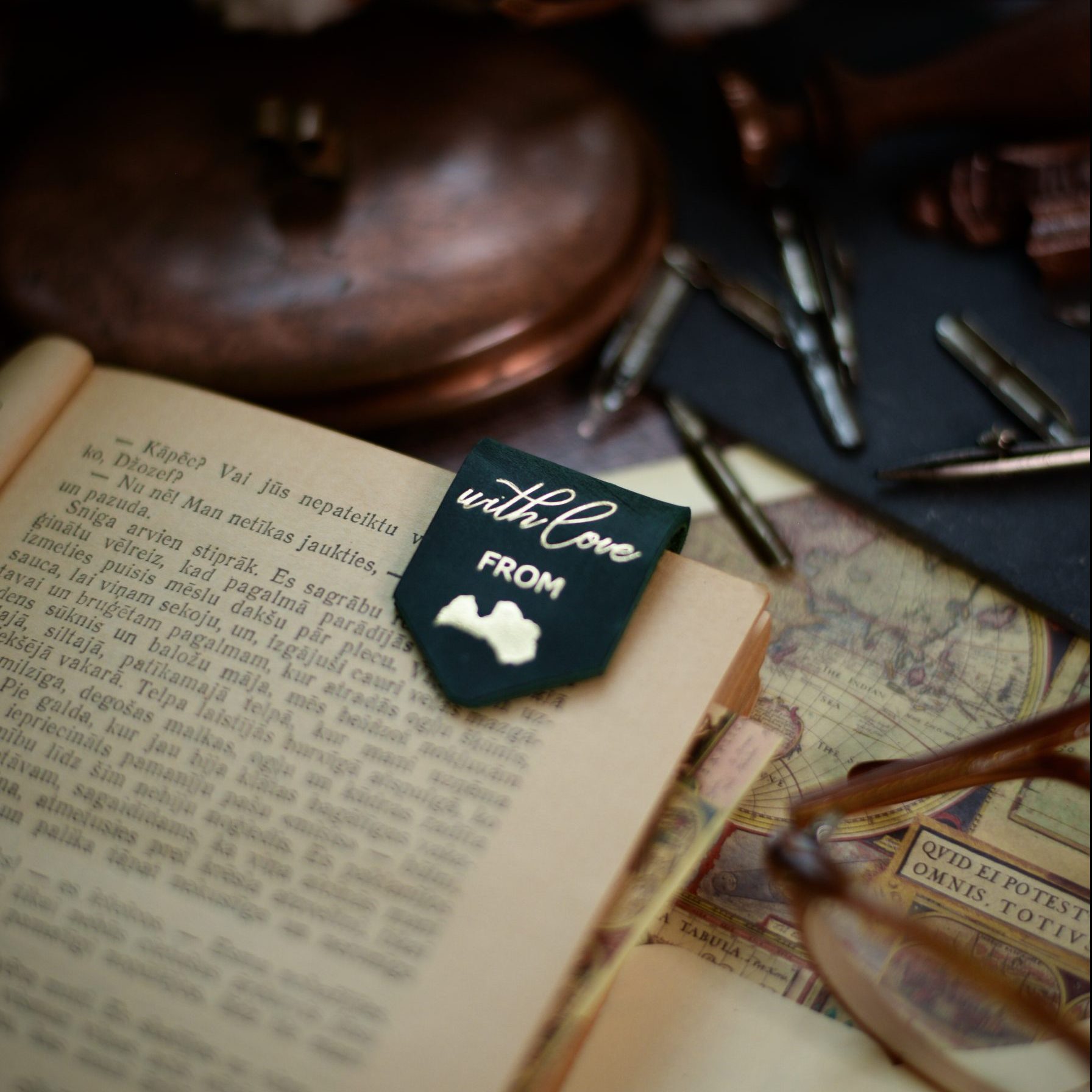 Natural leather bookmark with magnets and embossed design " With love from Latvia " . Given its shape and size, the bookmark will fit any size book or planner. Open the bookmark and with the parts of the bookmark, where embedded magnets grab the page you want to conveniently open later.