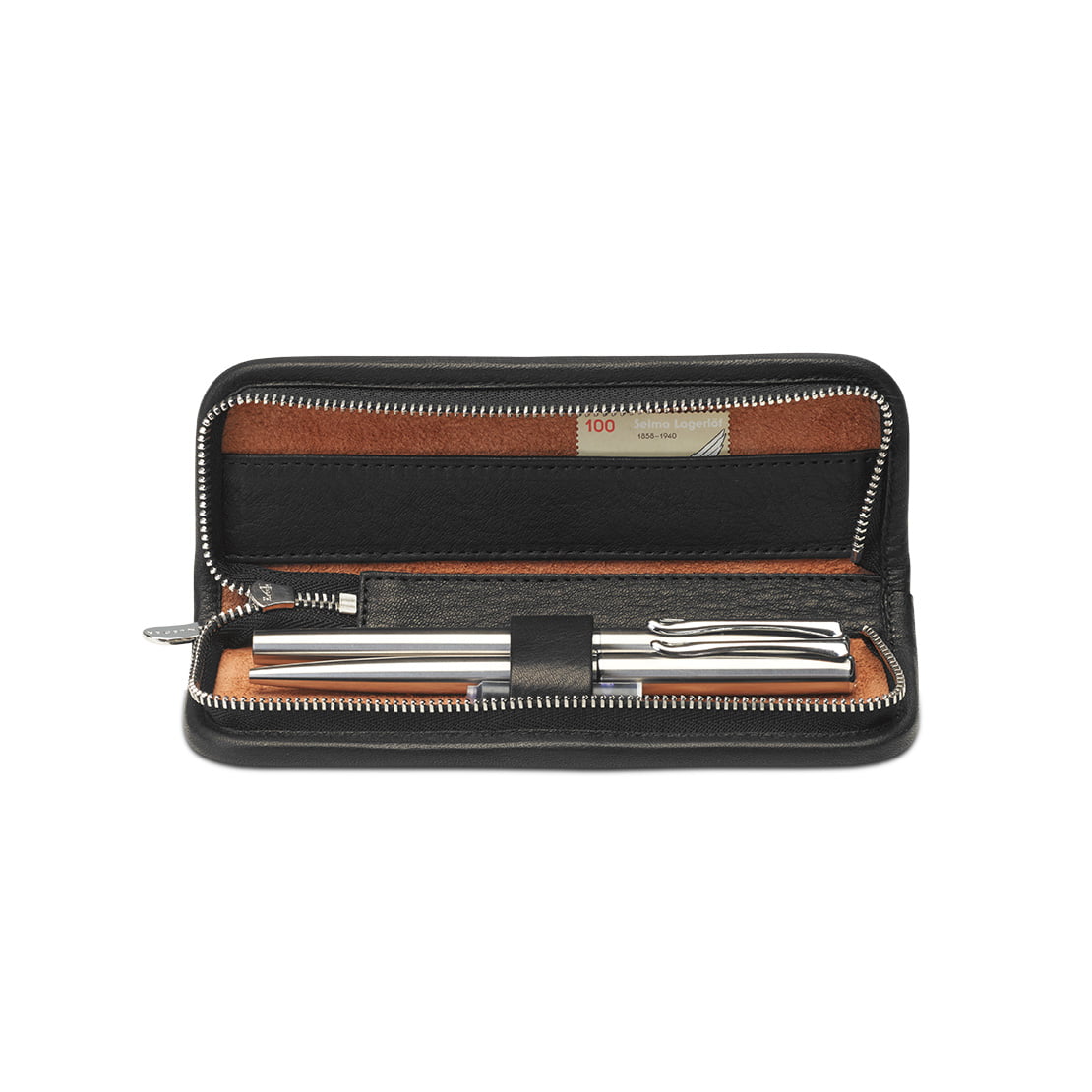 Ādas penālis ar rāvējslēdzēja aizdari. Penālim ir 3 cilpas ar ādas pārklājumu pildspalvām garumā līdz 14 cm, kā arī nodalījums lineālam (14 cm).