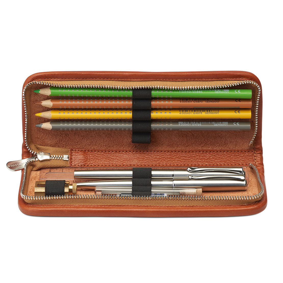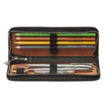 Ādas penālis ar rāvējslēdzēja aizdari. Penālim ir 9 cilpas pildspalvām garumā līdz 14 cm (viena no cilpām paredzēta tintes pildspalvai) , kā arī cilpa paredzēta dzēšgumijai/zīmuļu asinātājam.