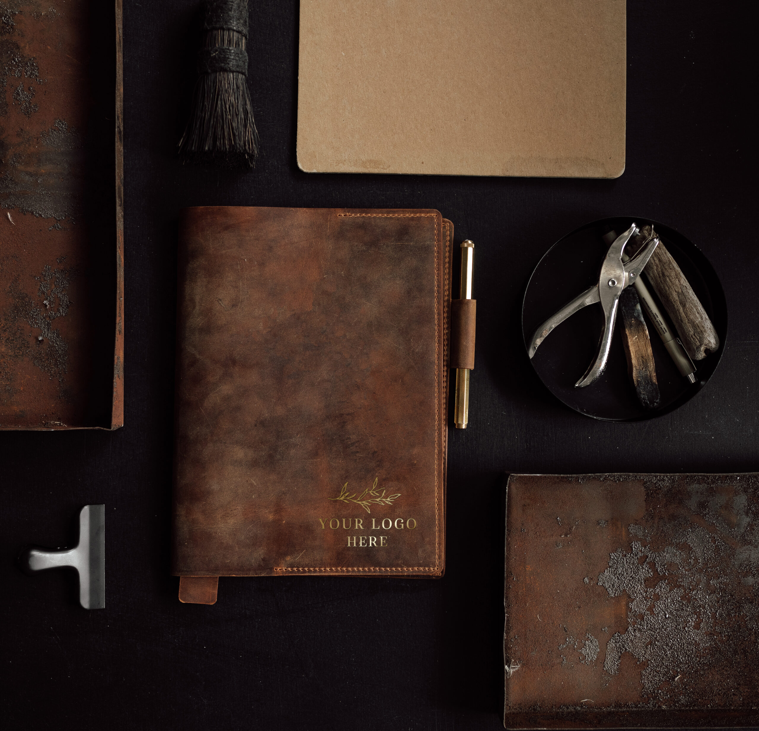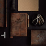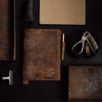 Dabīgas ādas vāki ar burtnīcu. Vākos iestrādātas sānu malu kabatas, aiz kurām vari ievietot burtnīcu, kā arī piezīmju lapiņas vai fotogrāfijas. Kreisajā sānu kabatā ir iestrādāta vieta vizītkartēm, bet labajā pusē ir vieta tavai iecienītākajai pildspalvai. Vākiem ir piestiprināta arī gara ādas grāmatzīme. Kad burtnīcu esi pierakstījis pilnu, iegādājies atsevišķi burtnīcu un turpini lietot šos pašus vākus.