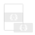 Personalizēta, dekoratīva lente ielūgumiem (ielūguma izmērs 10cm platumā, 15cm augstumā), drukāta baltā krāsā uz pauspapīra (caurspīdīgs papīrs) 120gsm biezumā. Derēs kā dekoratīvs akcents ielūgumu un kartīšu saturēšanai kopā. Saņemsi lentes nesalocītas, lai vari precīzi pielāgot nepieciešamajam formātam. Lentes vienā galā tiks piestiprināta abpusējā līmlente ērtai aizdarei. Lentes augstums ir 5cm.