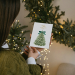 Grezna svētku apsveikuma kartīte uz kvalitatīva, bieza papīra ar personalizētu logo drukātu vai iespiestu folijspiedē.