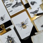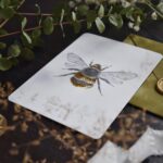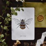 Vienpusēja apsveikuma kartīte baltā krāsā, noapaļotiem stūriem ar mākslinieces Ilonas Kaķītes bites ilustrāciju un tekstu "hello honey". Teksts un ilustrācijas detaļas iespiestas zelta reljefspiedē. Otra kartītes puse ir tukša, lai vari uzrakstīt savu vēlējumu.