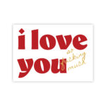 Vienpusēja apsveikuma kartīte baltā krāsā ar tekstu "i love you so fucking much". Otra kartītes puse ir tukša, lai vari uzrakstīt savu vēlējumu.