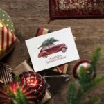 Vienpusēja Ziemassvētku apsveikuma kartīte ar ilustrāciju.