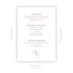 Kāzu ielūguma detaļu kartīte. Minimāls un elegants dizains brūnos un zilos toņos, kas papildināts ar līgavas un līgavaiņa iniciāļiem. Lieliski saskanēs ar kolekcijas "Jūra" galveno kartīti, kas iederēsies jūras vai pie dabas organizētu kāzu tematikā.