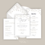 Ielūgumu iespējams papildināt ar pieskaņotas stilistikas- detaļu kartīti, aploksni, RSVP, ēdienkarti, vietu kartēm u.c. Visas papildu detaļas iespējams iegādāties atsevišķi mājas lapā.